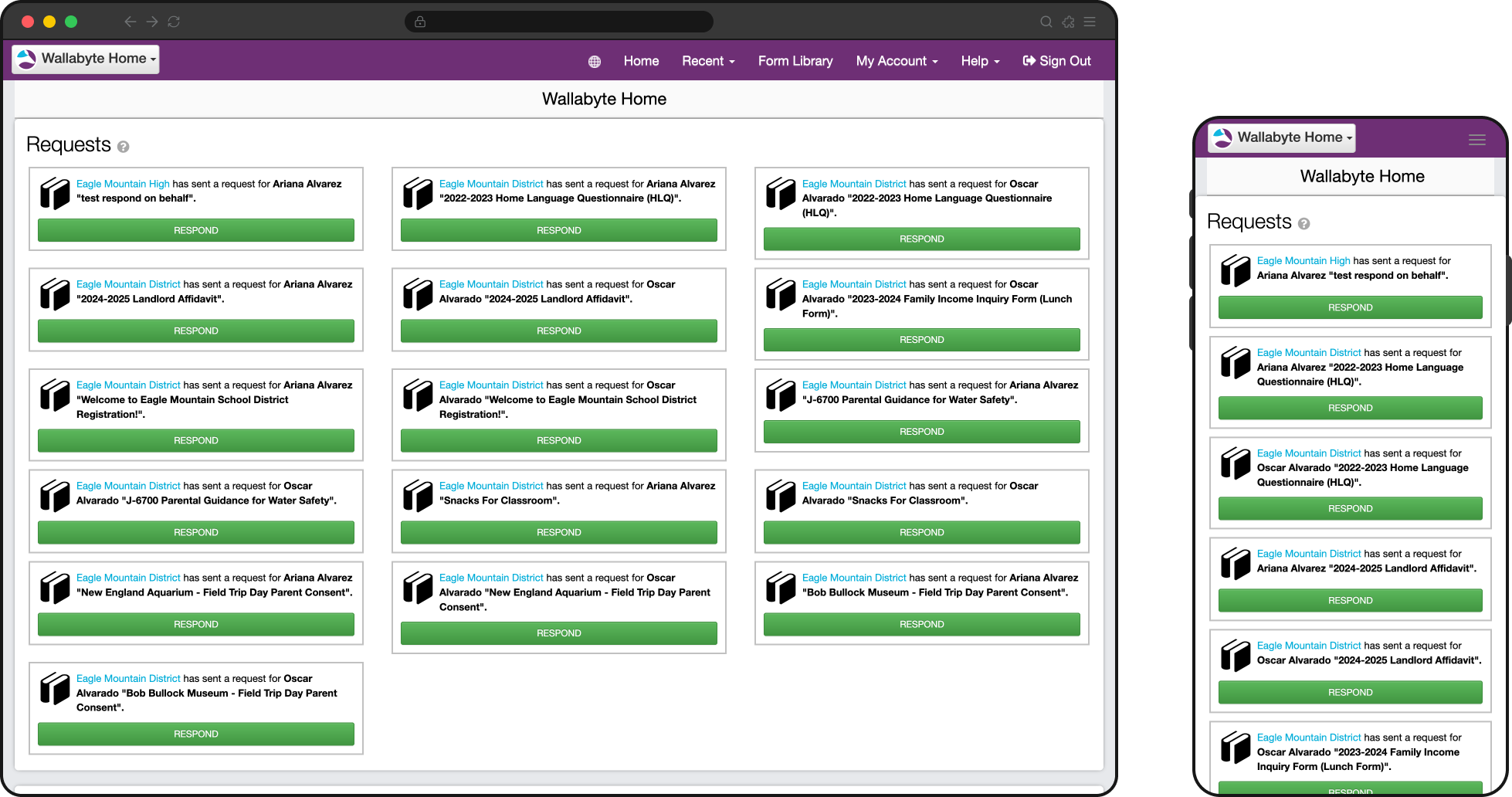 Wallabyte had two halves: an administrative app for creating and managing forms, and a parent- and staff-facing app for completing forms. This redesign only touched this second, smaller part—called Wallabyte Central—due to the particular churn risk it was creating.